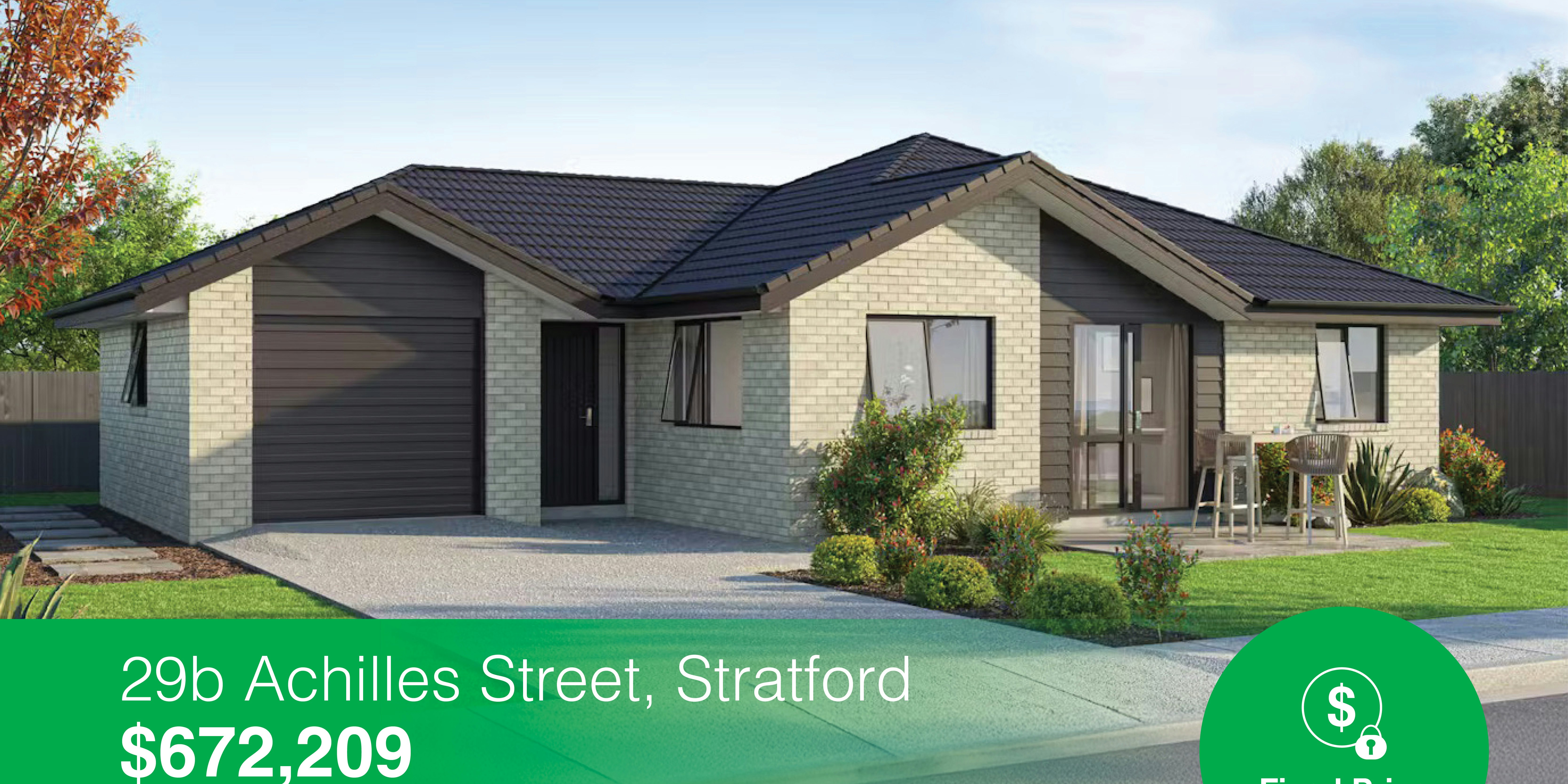 Secure Lot 2, a flat, north-facing 500m² section, the last section in the new subdivision on Achilles Street. This low-maintenance, yet modern home features three bedrooms, an open-plan kitchen, living and dining area and a single-car garage.